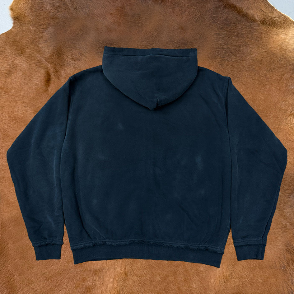 Crafted with a hand spray enzyme wash and a soft-finished heavyweight fabric, this hoodie features raw-edge finishing and hand-applied distressing — creating a naturally worn-in look while maintaining a clean, structured silhouette.