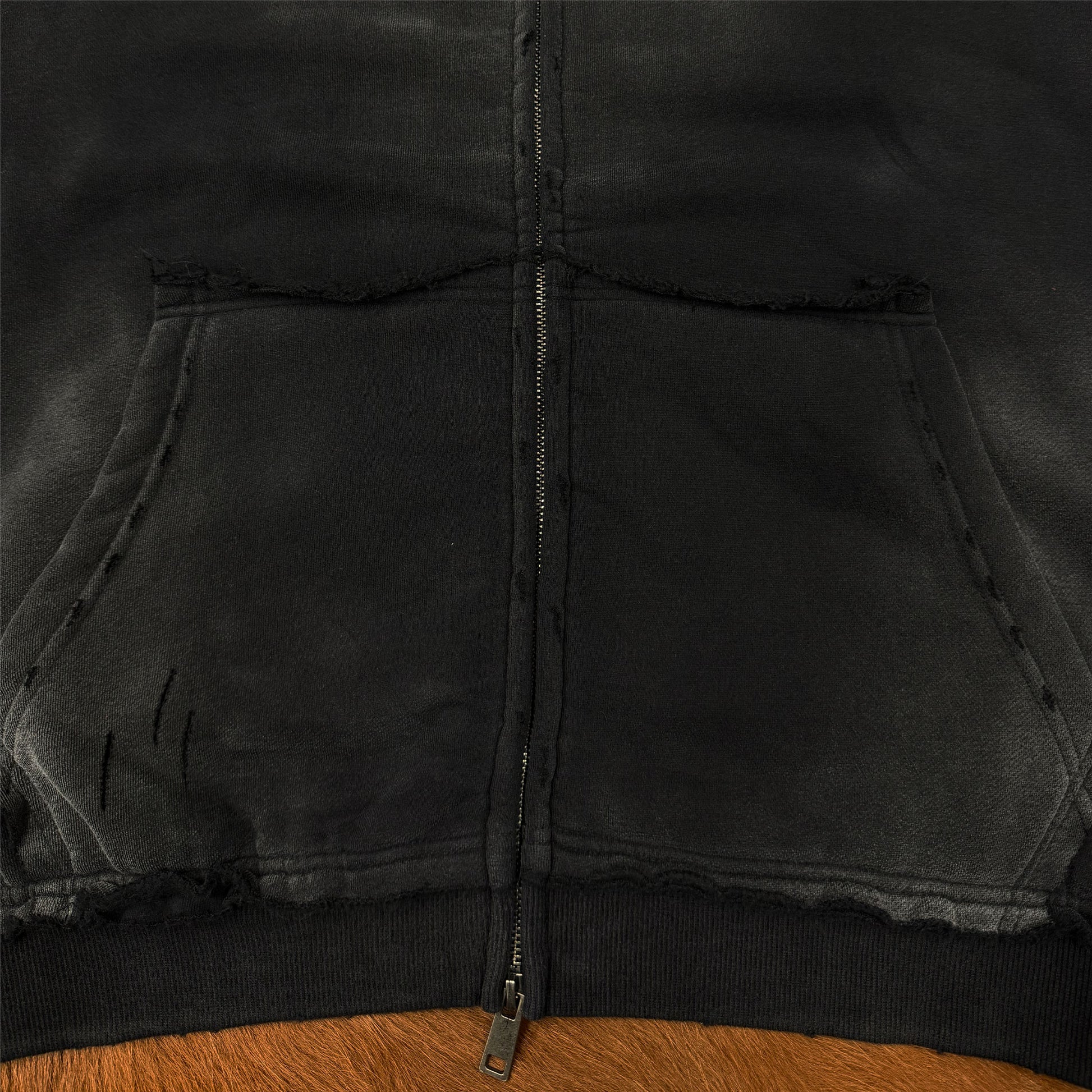 Raw Edge Distress Full-Zip Hoodie
